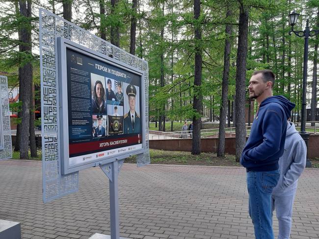 Одной из ключевых площадок чествования юбилея Победы в Великой Отечественной войне стал Республиканский музей Боевой Славы. Рядом с ним расположена фотовыставка, посвященная Героям России - участникам специальной военной операции. Уличная экспозиция «Герои и подвиги» создана Российским военно-историческим обществом при поддержке Министерства обороны РФ. Огромную помощь в открытии выставки оказали близкие героев, приславшие материалы и фотографии из семейных архивов.