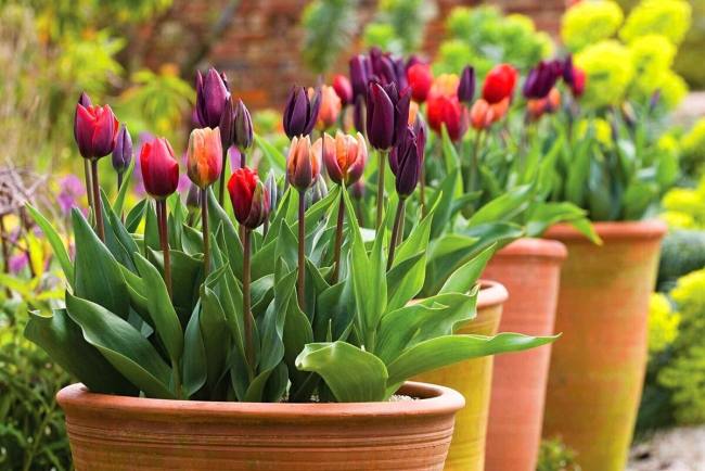За окном октябрь, а значит, пришло время сажать тюльпаны. Можно просто посадить луковицы в клумбу, а можно попробовать сделать мобильный цветник. Он позволит расположить цветы в любом месте сада, которое хочется украсить: на дорожках, в беседке или в зоне отдыха. Когда растения начнут отцветать и перестанут радовать глаз, их можно убрать в укромное место, где они завершат цикл сезонного развития, а вместо них разместить однолетки: бархатцы, петуньи, агератум.