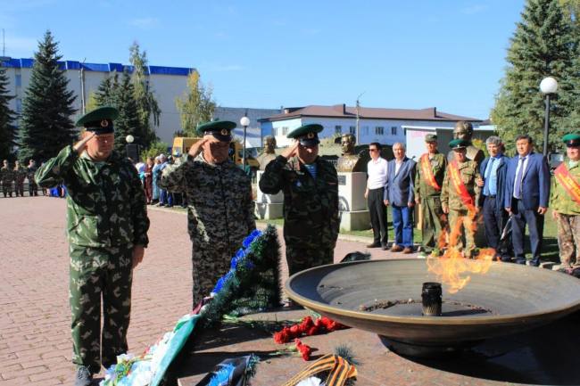 В этот день в селе Раевка мы стали участниками волнующего события: Альшеевскому району была передана капсула с землей с места захоронения героически погибшего в 1942 году на Кавказе в боях против немецко-фашистских захватчиков Сарьяра Минигалеевича Гайсина. Экспедиция на места боевых действий в Адыгейскую Республику была организована в июне нынешнего года в рамках межрегиональной эстафеты пограничных поколений, посвященной 80-летию Великой Победы, председателем региональной общественной организации Совет ветеранов ФСБ России по Республике Башкортостан полковником в отставке М.З.Гаязовым при участии ветеранов пограничных войск В.Г.Петрякова и В.З.Раянова.