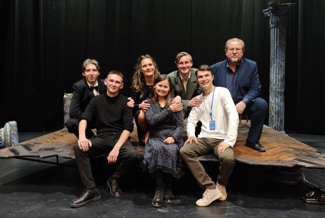 Но, пожалуй, в Йошкар-Оле самым трогательным моментом стало то, что на спектакль уфимцев пришли два поколения актеров Марийского ТЮЗа, которые когда-то сами играли Лику, Марата и Леонидика, а вместе с ними и режиссер-постановщик, художественный руководитель театра Олег Иркабаев: «Мы переживали за ребят как за себя! За эти два часа, пока шло действие, они стали нам родными. Сидели в зале и понимали: арбузовский текст ролей забыть невозможно. И как же было здорово снова прожить эту историю вместе с вами!» (на верхнем фото: наши с одним из составов хозяев).