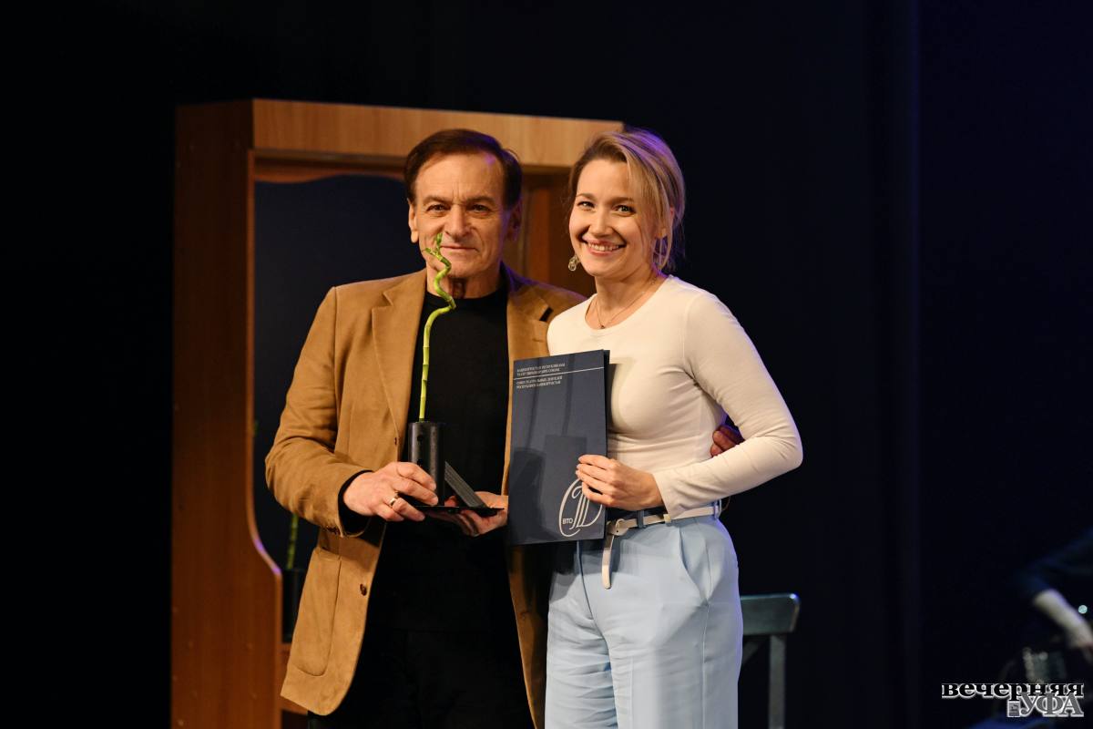 Зал, настроенный чрезвычайно доброжелательно, был теплым, адекватным, смешливым. Так что все старания вышедших на подмостки НМТ спикеров торжества были омыты овациями и радостным всепобеждающим смехом. Сценическое братство оценило все: безусловный талант ведущего – актера Башкирского государственного театра кукол Вадима Габидуллина и его соведущего – актера Русского академического театра Дамира Кротова, пытавшегося вспомнить все навыки по такому предмету, как ПФД (память физического действия); пластичность, обаяние и умение (как говорят на театре) «хлопотать лицом» актера Башкирского академического Руслана Хайсарова; изящество и элегантность прекрасных дам – актрисы «Нура» Чулпан Раяновой и представлявшей ТЮЗ Алины Латыновой, а также балетмейстера Алины Мустаевой… Весьма оживили действо приглашенные участники церемонии – джазмены из филармонии, актриса НМТ Гульшат Гайсина, а также дуэт самых остроумных солистов Башкирского государственного академического театра оперы и балета, больших мастеров на озорство – Ларисы Ахметовой и Владимира Копытова. Отмечу: все они подарили залу прекрасные вокальные номера. Добавим в этот славный перечень и чудесный «спевшийся» дуэт актеров НМТ Лилии Искужиной и Динислама Сафина.