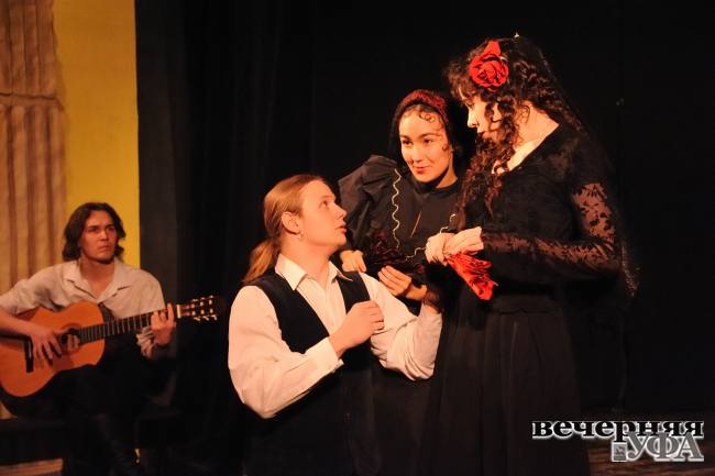 …Насладиться «испанскими страстями» собрались на этот раз в институтской аудитории многие актеры Национального Молодежного театра – слух об успехах курса ушел, что называется, в народ, и профессионалы потянулись на театральный факультет, возжаждав взглянуть на юную смену. И я представляю чувства и волнение народной артистки Башкортостана, одной из ведущих актрис НМТ Ольги Мусиной, в свое время в период становления Национального Молодежного игравшей роль Финеи в спектакле «Дурочка» по пьесе Лопе де Веги, который поставил только-только пришедший в театр незабвенный Азат Ахмадуллович Надыргулов… Глядя на «молодое пополнение» в отрывке из «Дурочки», Ольга Геннадьевна явно волновалась, вспоминая слова Азата Ахмадулловича о том, что эта пьеса – мощная школа для начинающего свой путь театра, в котором собрали на тот момент весьма разнородный по своему составу актерский коллектив…