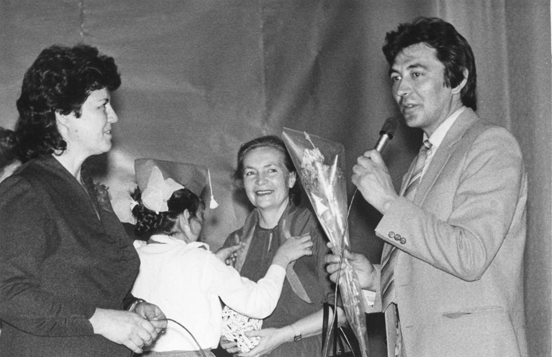 …Незабываема для меня встреча в мае 1985 года. В доме культуры «Авангард» Уфимское агрегатное производственное объединение отмечало 40-летие Великой Победы. На сцену поднялись ветераны, пришедшие на завод во время войны подростками. Музыкальный подарок для них – выступление Радика Гареева, тогда только начинающего свой звездный путь, обладателя Гран-при Всесоюзного фестиваля политической песни «Красная гвоздика». Не случайно был приглашен именно он (на нижнем фото). Луч софита высвечивает портрет обаятельной девушки. «Знакомо Вам это лицо?» – спрашиваю я, ведущая вечера. «Да, – отвечает Радик, – это мой педагог Миляуша Галиевна Муртазина». Для него тогда стало откровением, что в военные годы она работала на заводе контролером инструментального цеха. Мила Муртазина участвовала в художественной самодеятельности, ее обожали за красивый голос и душевные песни. Рассказ об этом и встреча с поднявшейся на сцену Миляушой Галиевной потрясли Радика. На огромном эмоциональном подъеме он исполнил одну из лучших своих песен – народную башкирскую «Уралым». Он пел так, что взбудораженный зал притих. Смолкли последние звуки мелодии. Несколько секунд тишины – и гром оваций.