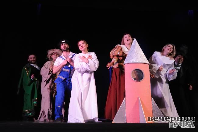 Итак, 13 апреля, сразу после того, как весь мир отметил 65-летие первого полета человека в космос, Союз театральных деятелей Республики Башкортостан собрал под свои знамена участников XXII Республиканского фестиваля театральных капустников «Веселая кулиса», который возродился аки Феникс из пепла благодаря новому составу руководства нашего СТД. Этот фест всегда был одним из самых любимых у театрального братства, но, увы, изначально его отправила в небытие пандемия, а затем по самым разным причинам он все никак не мог вернуться на свою орбиту. Перерыв затянулся на пять долгих лет… И вот свершилось! «Веселая кулиса» вернулась практически триумфально, и многочисленная публика приветствовала участников девяти команд, поднимавшихся на сцену Дома Актера, почти как героев космоса, благо и тема соискателям призовых мест была предложена соответствующая – фестиваль был посвящен Дню космонавтики и уже упомянутому 65-летию первого полета человека в космос. Кому-то выбор титульной темы показался странным; кто-то вспомнил о космическом путешествии актрисы Юлии Пересильд и режиссера Клима Шипенко; кто-то подумал о том, что театральное закулисье – это своего рода космос для неофитов, а творческие устремления и талант той или иной труппы подчас могут достигать космических высот… В общем, театральные коллективы подумали-подумали и… принялись готовиться.