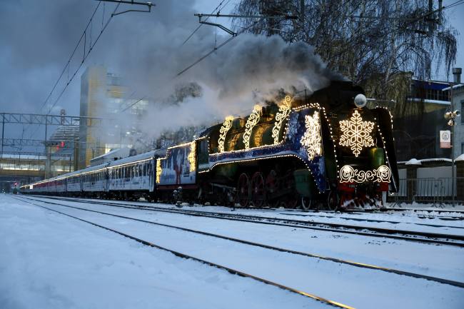 …На информационном табло загорается строка «Поезд Деда Мороза», время прибытия – 11.00. И вот точно по расписанию к первой платформе подходит сказочный состав, а празднично украшенный паровоз дает протяжный гудок.